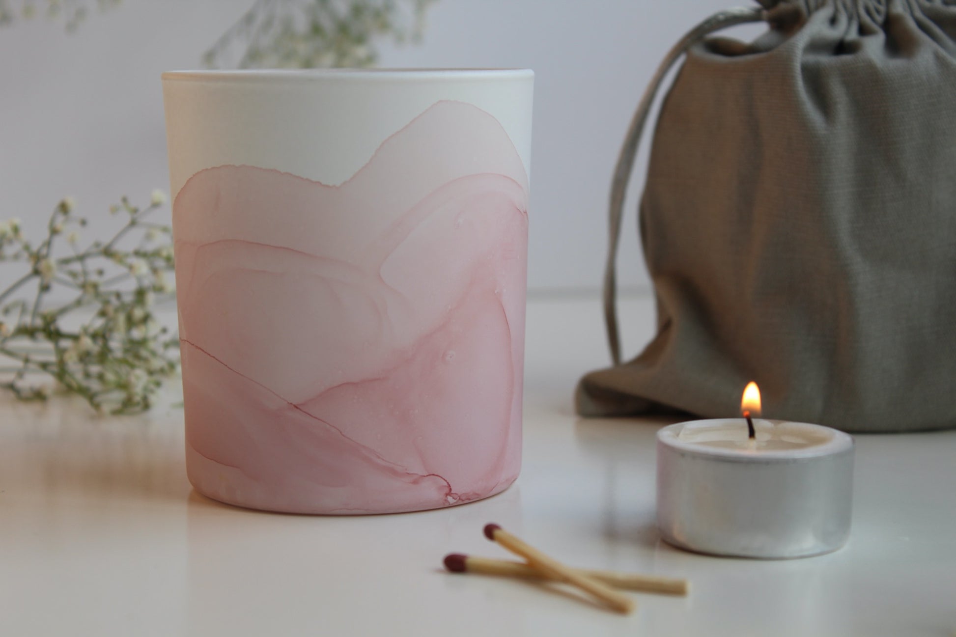 Add a unique touch to your decor with this blush hand-painted pot, crafted by artist Christina Sadler. Each glass holder features a soothing water-inspired design, layered with care to create a truly one-of-a-kind piece. The luxurious matte finish and weighty feel make it both visually striking and tactilely satisfying.
