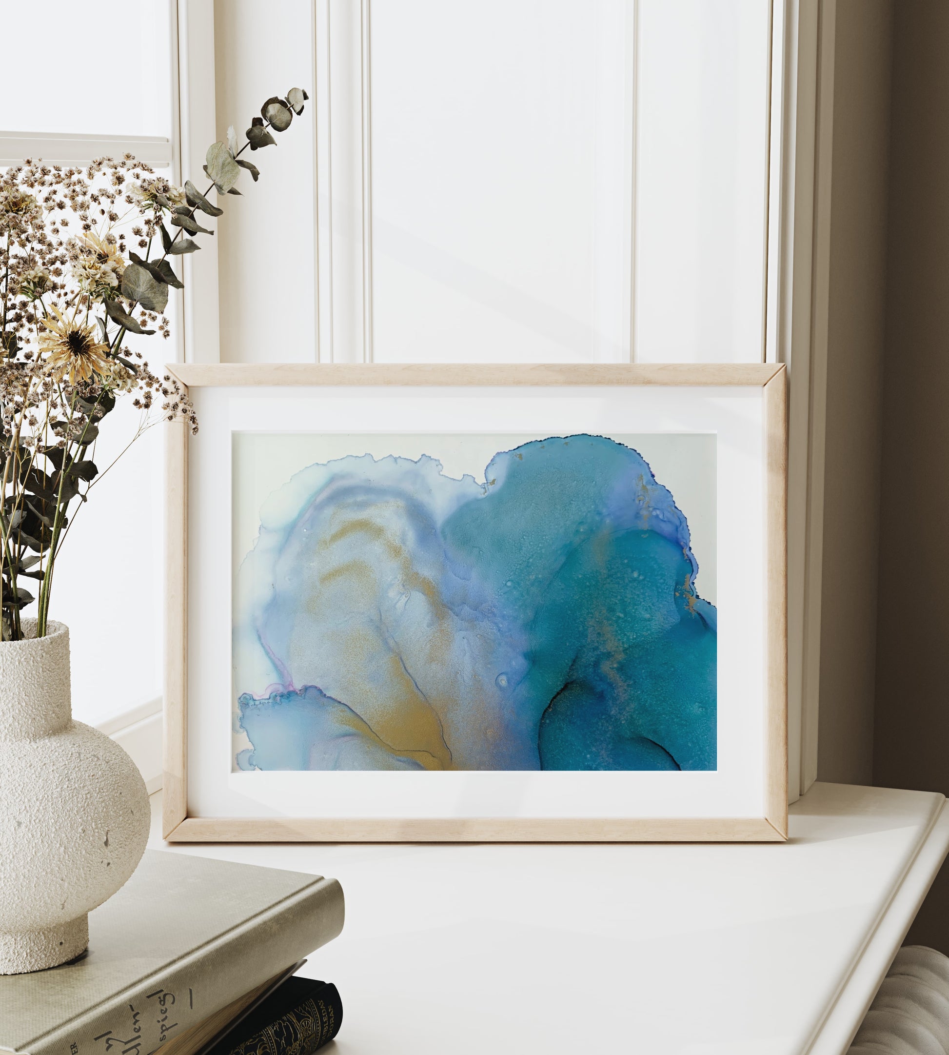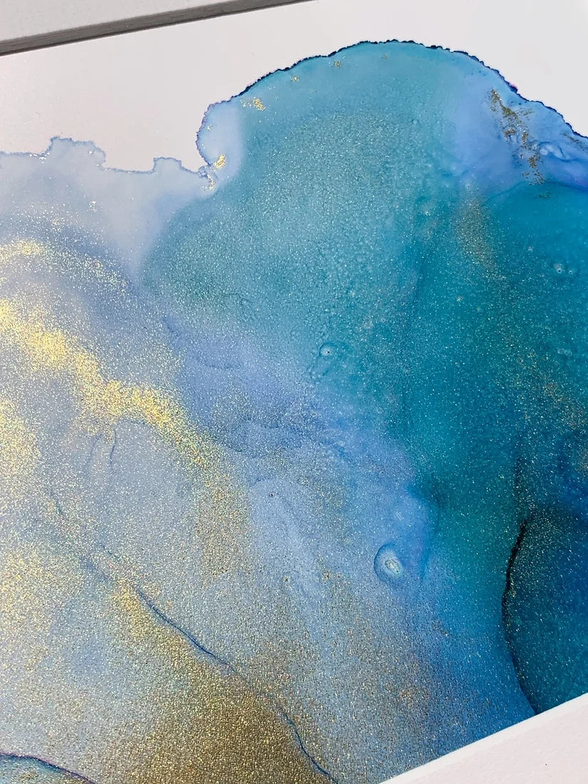 The painting comes in a mount and back board. The painting has been inserted using a hinge technique. This means the painting is not glued to the board meaning if your mount is ever damaged, or you wish to change the colour the painting can be removed unharmed.