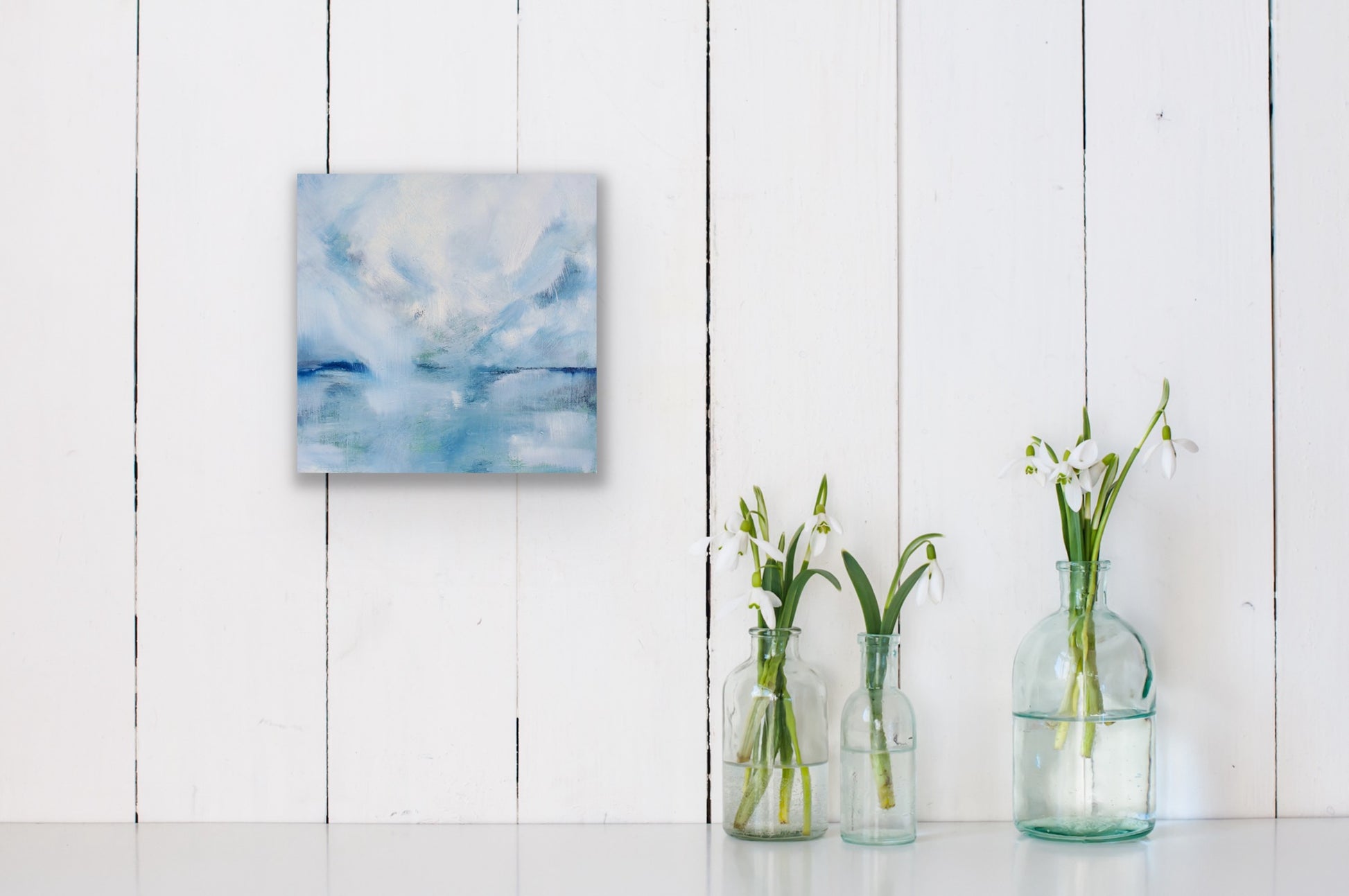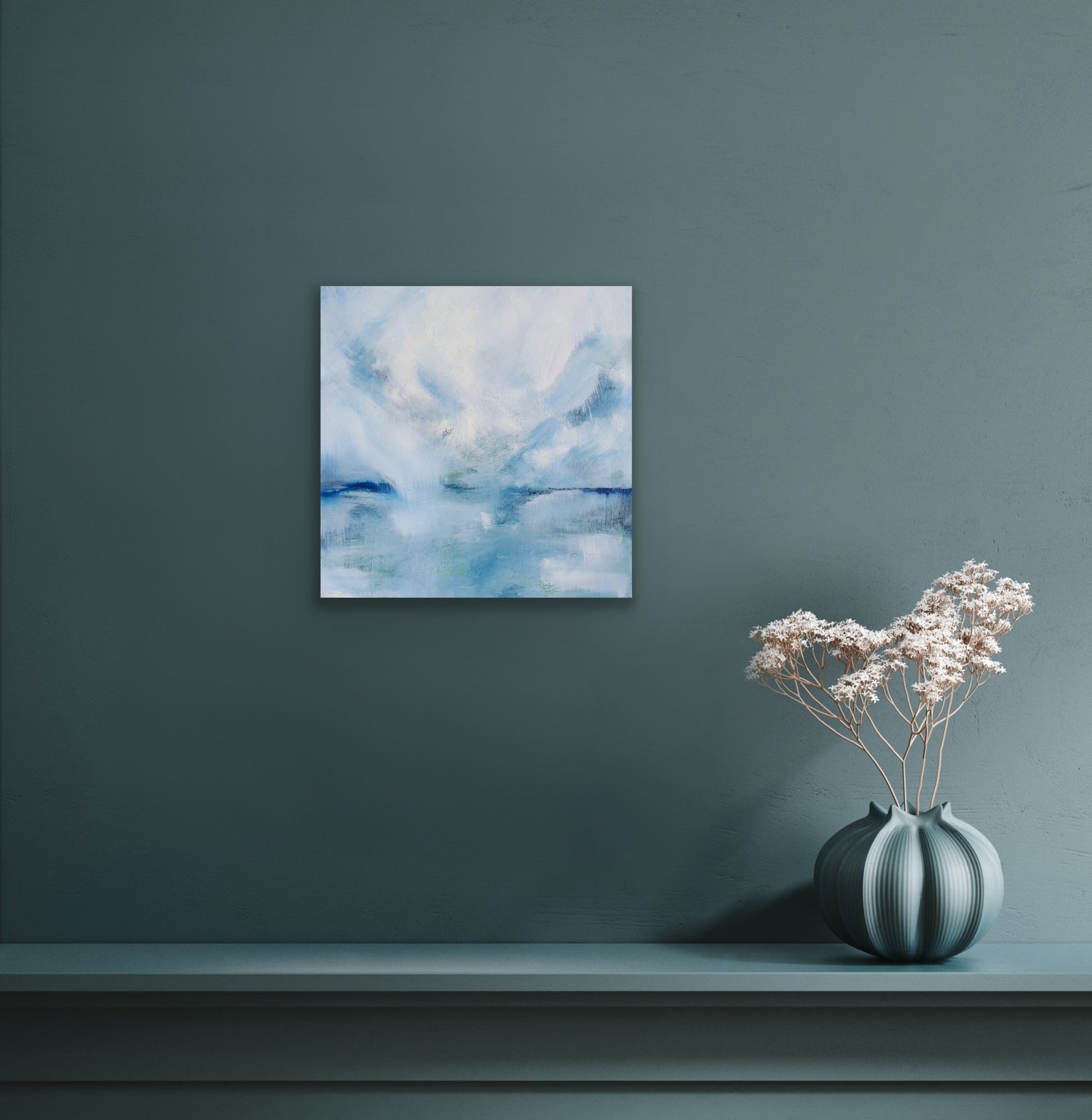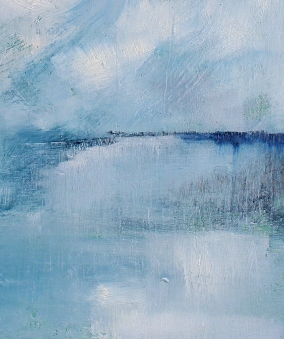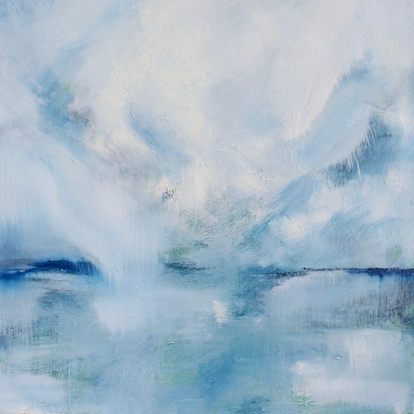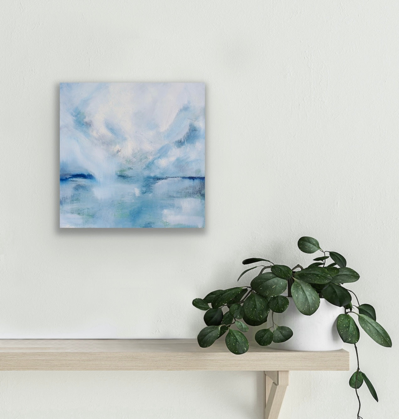A soothing abstracted painting of the horizon. Gaze across the brush strokes and blending of colours. A captivating horizon asking for a moment of reflection.