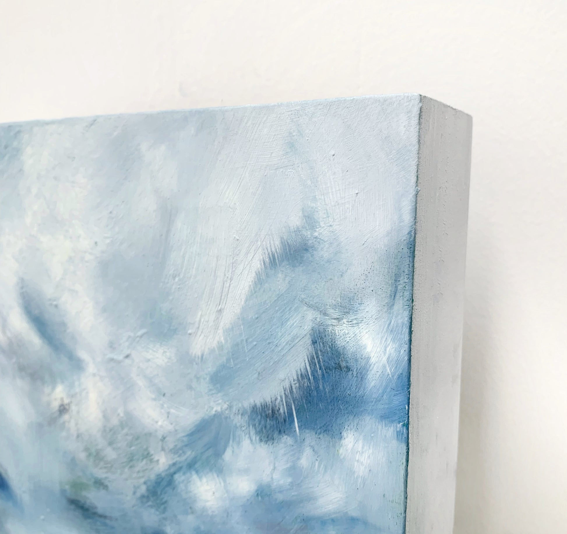 Oil on board with a depth of 5cm allowing you to hang on the wall easily.