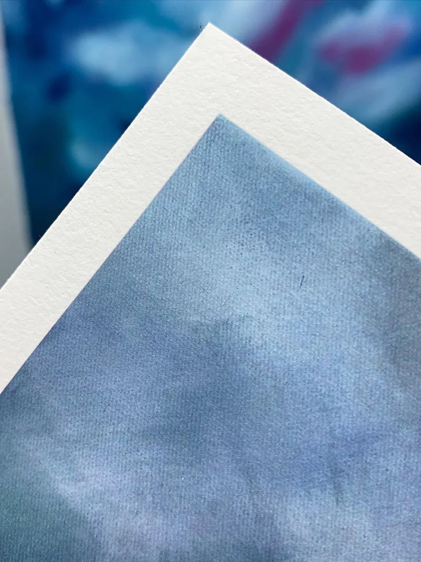 Each piece is professionally printed using giclée techniques on Hahnemühle Photo Rag (308gsm) a softly textured, matte paper made from 100% cotton. It’s museum quality and captures all the painterly detail and layered depth of the original artwork.