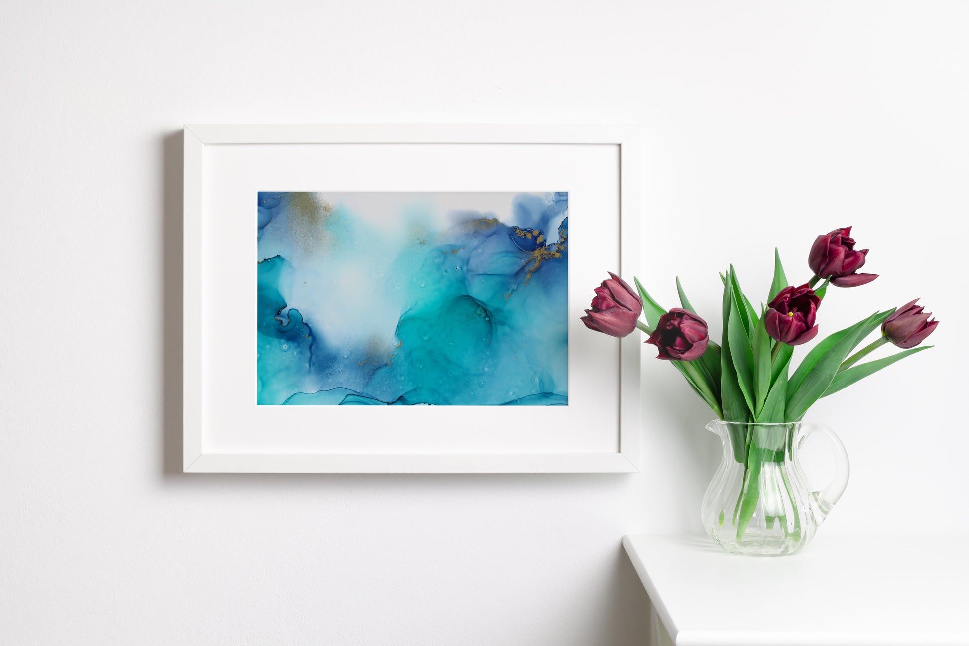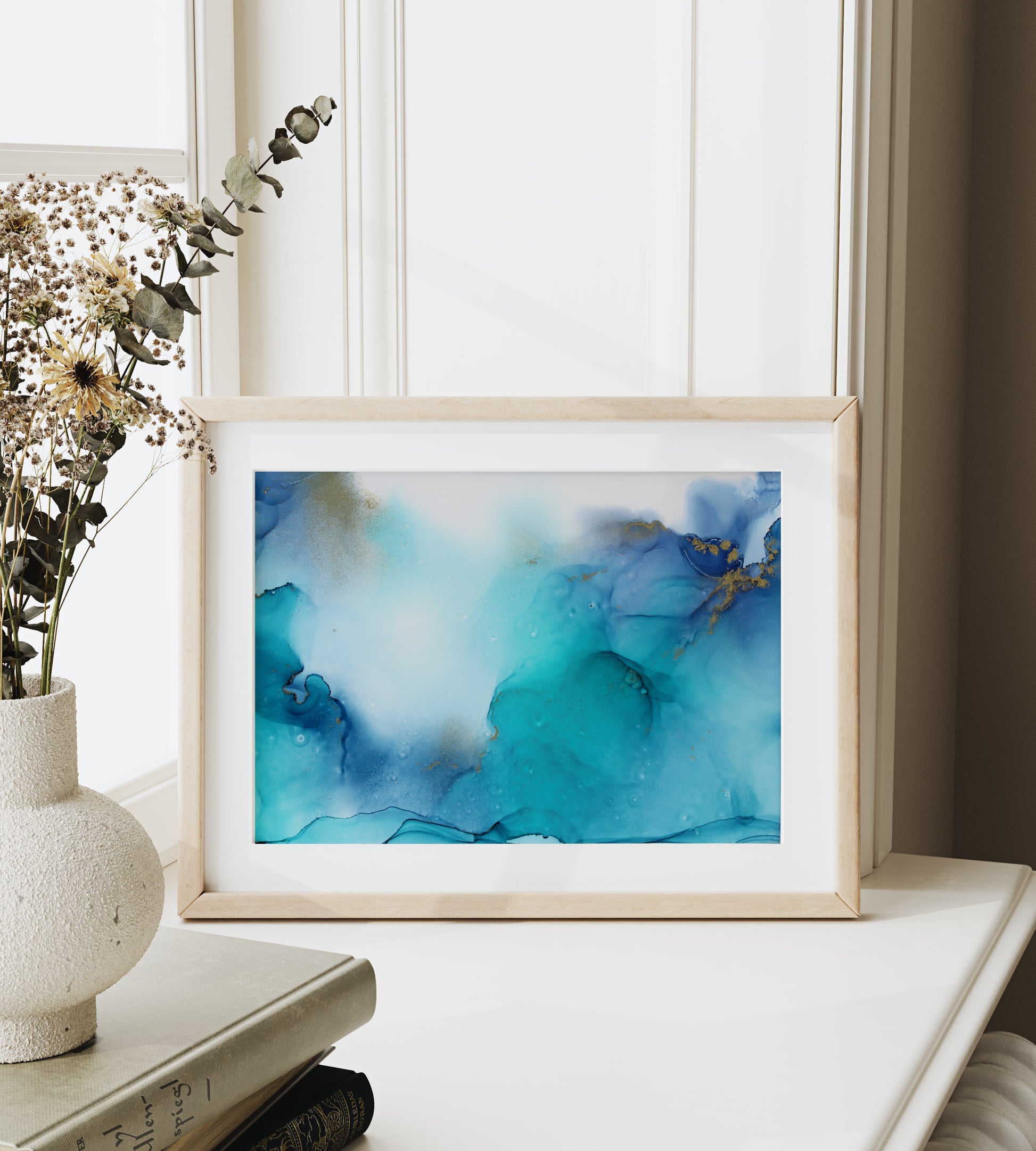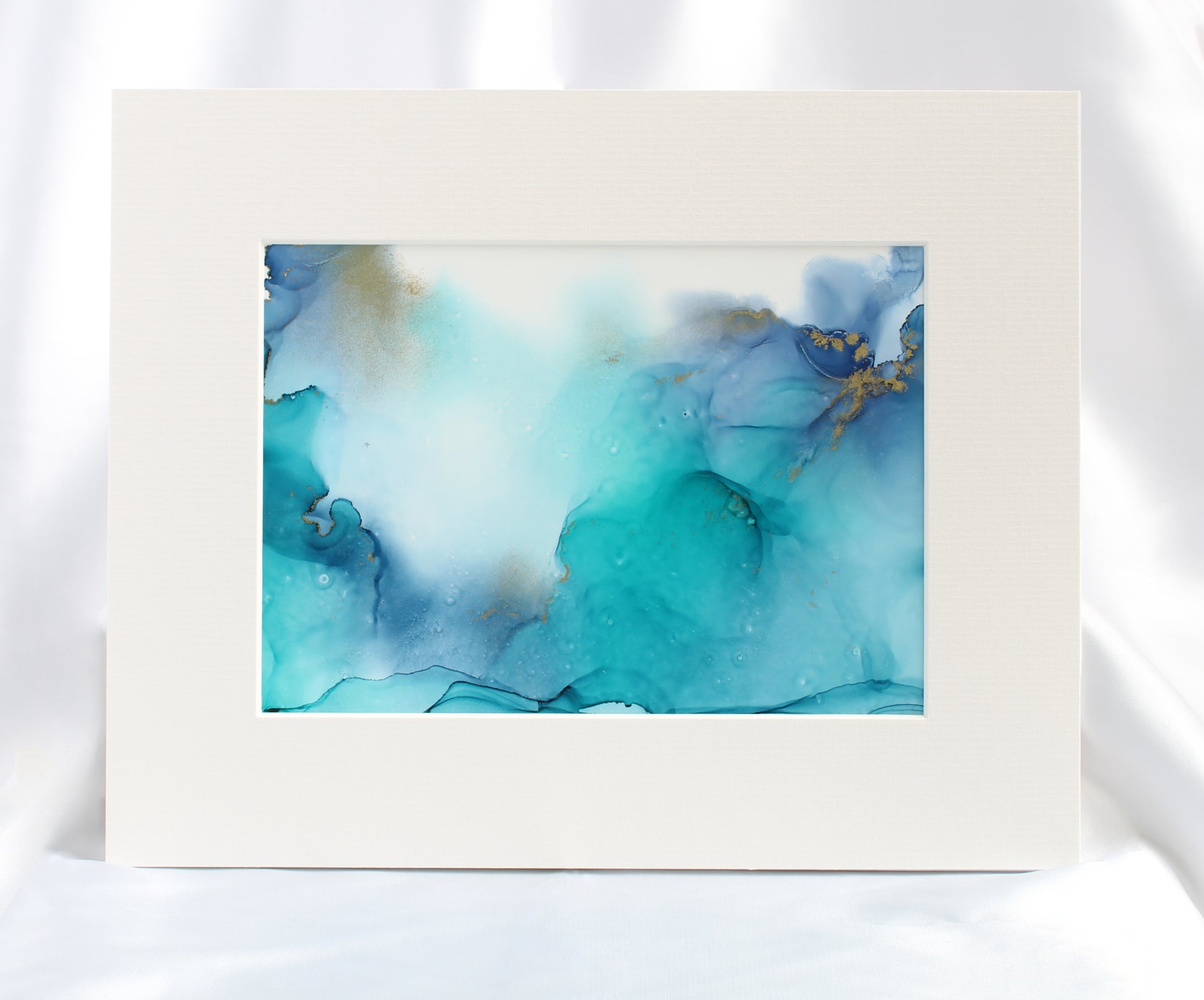 The painting comes in a mount and back board. The painting has been inserted using a hinge technique. This means the painting is not glued to the board meaning if your mount is ever damaged, or you wish to change the colour the painting can be removed unharmed.