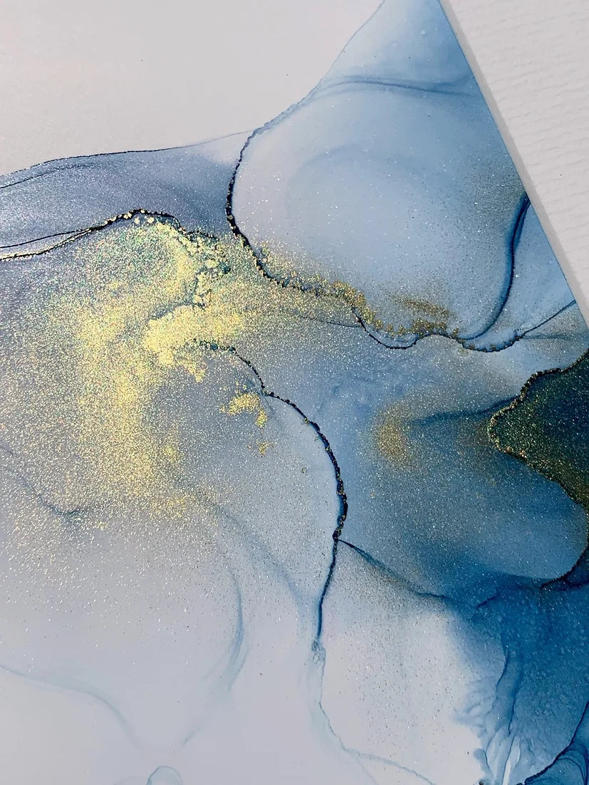 Delicate dream like areas, or skies of clouds, gold highlights with sun shining on.
