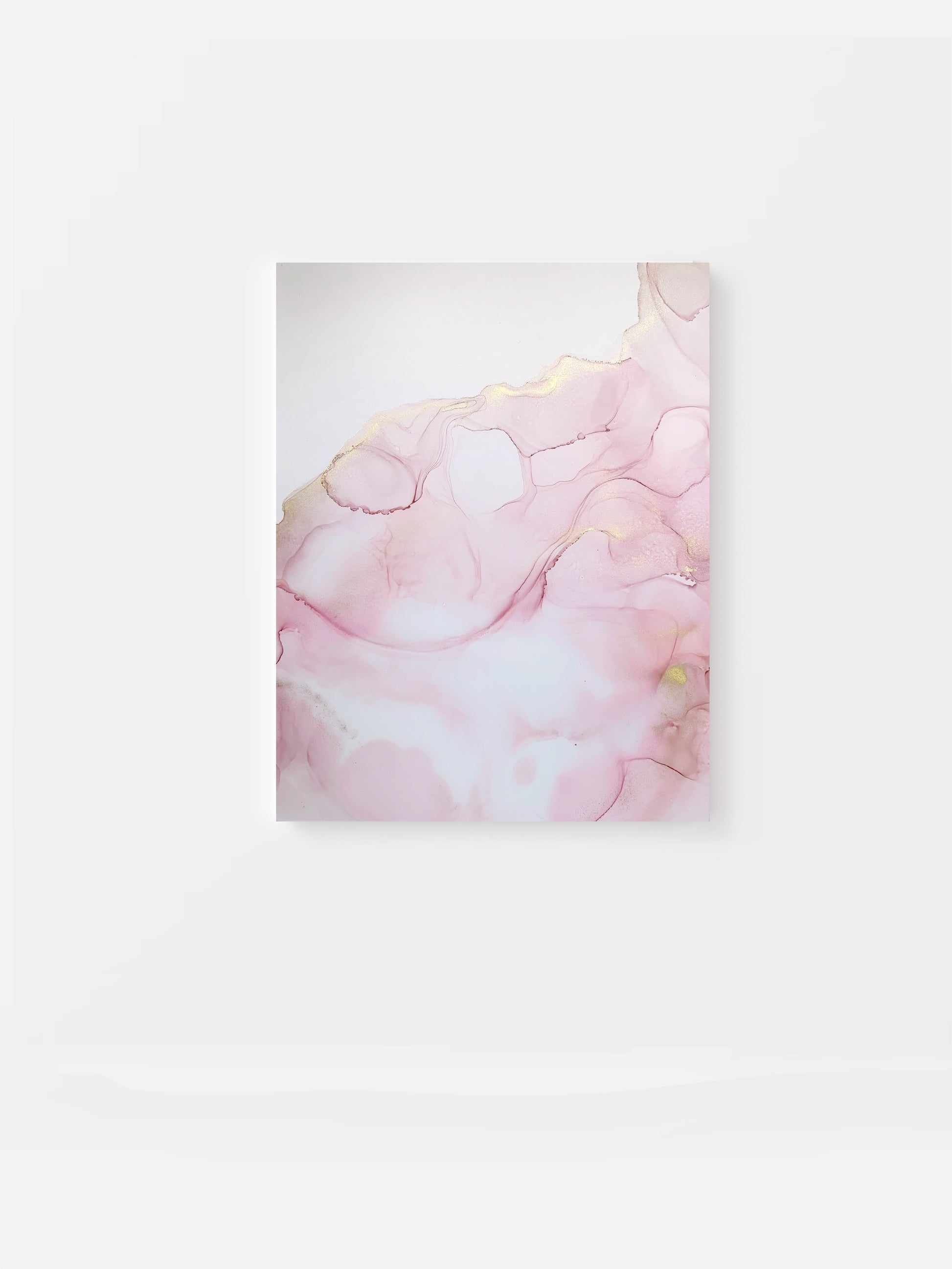 Created with mixtures of blushing pinks, softer areas appear with powder pinks. Gentle and subtle this painting flows with calming pink colour. More translucent areas appear in the painting as washes of ink blend over the surface.