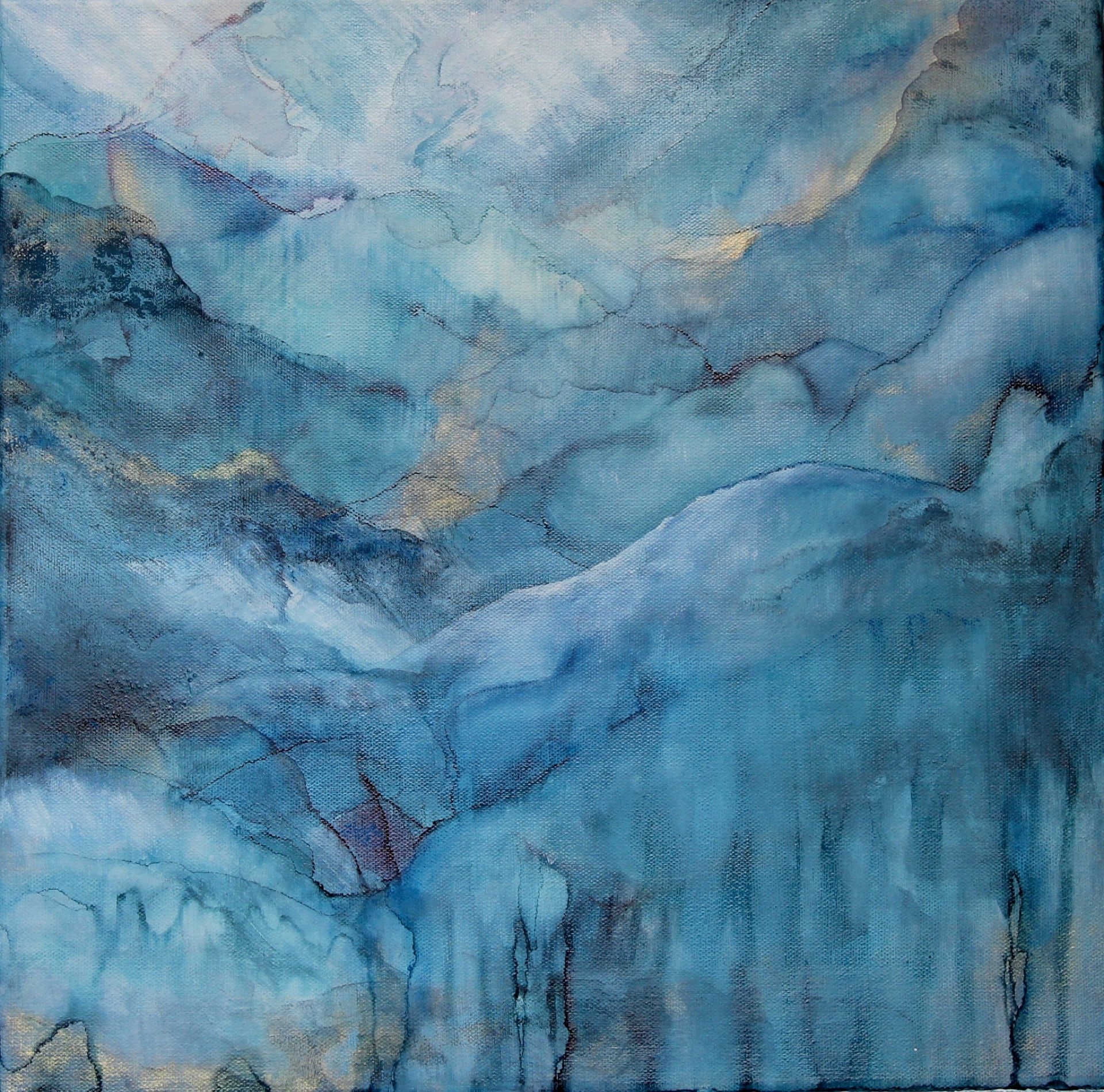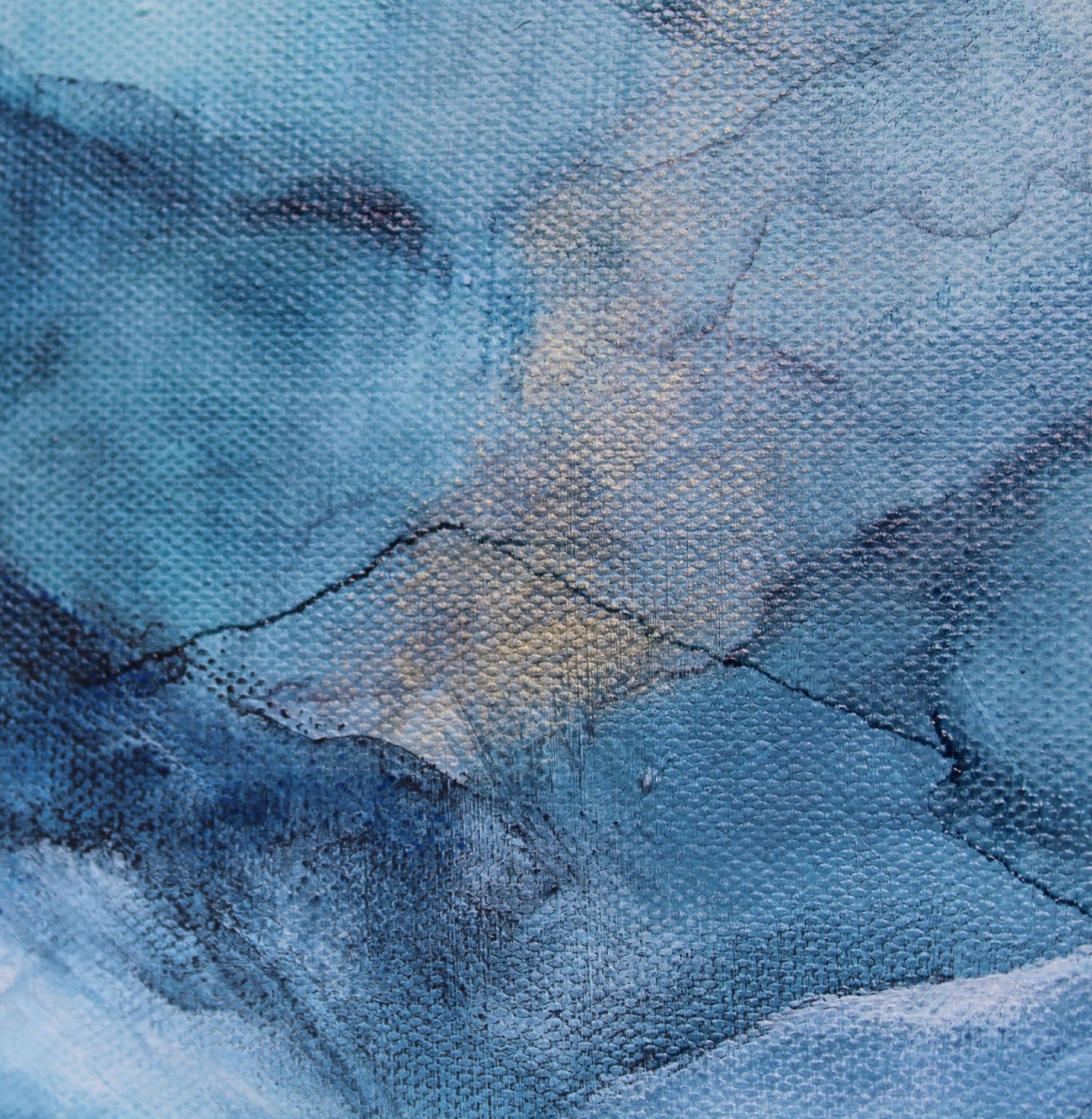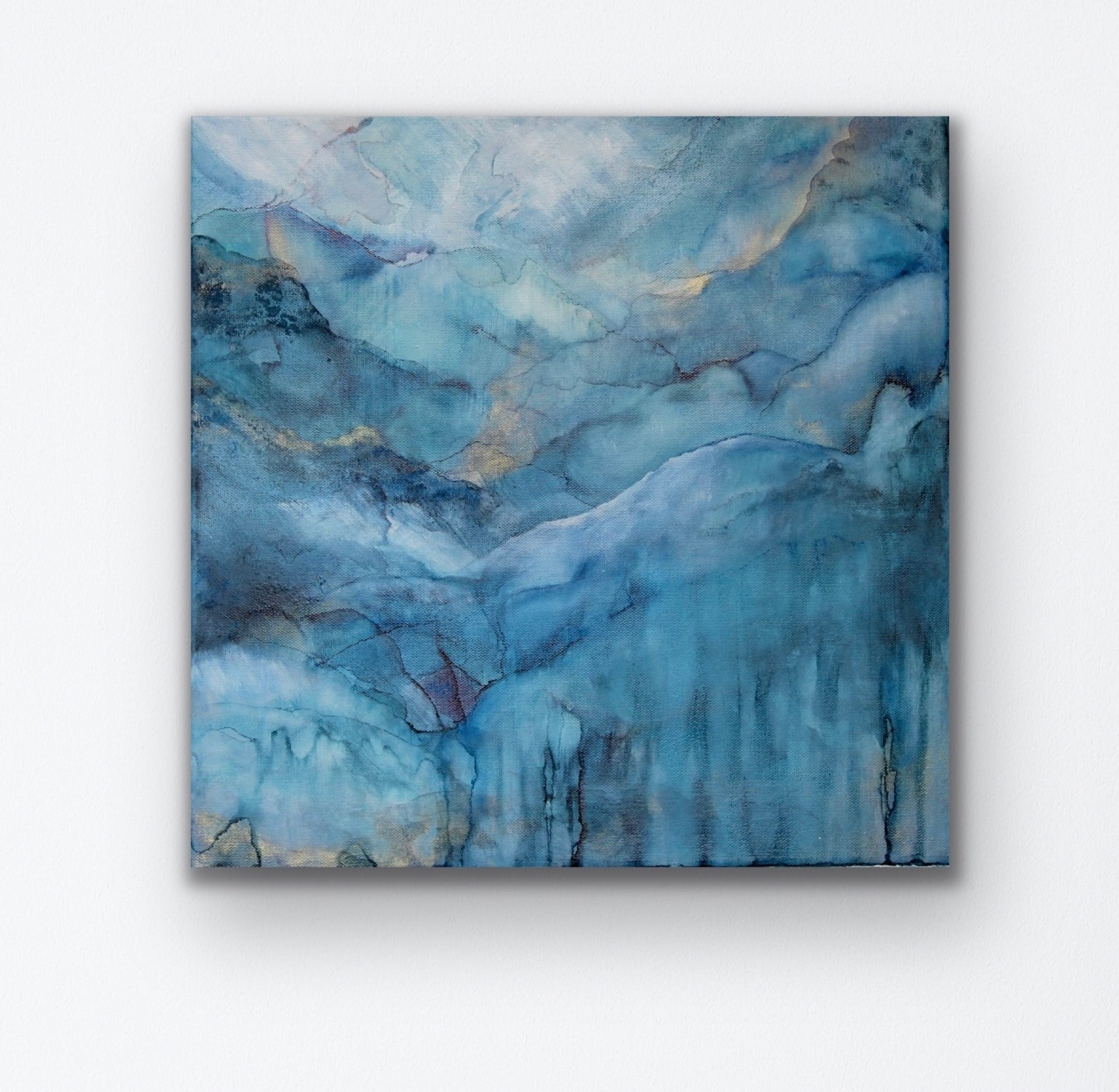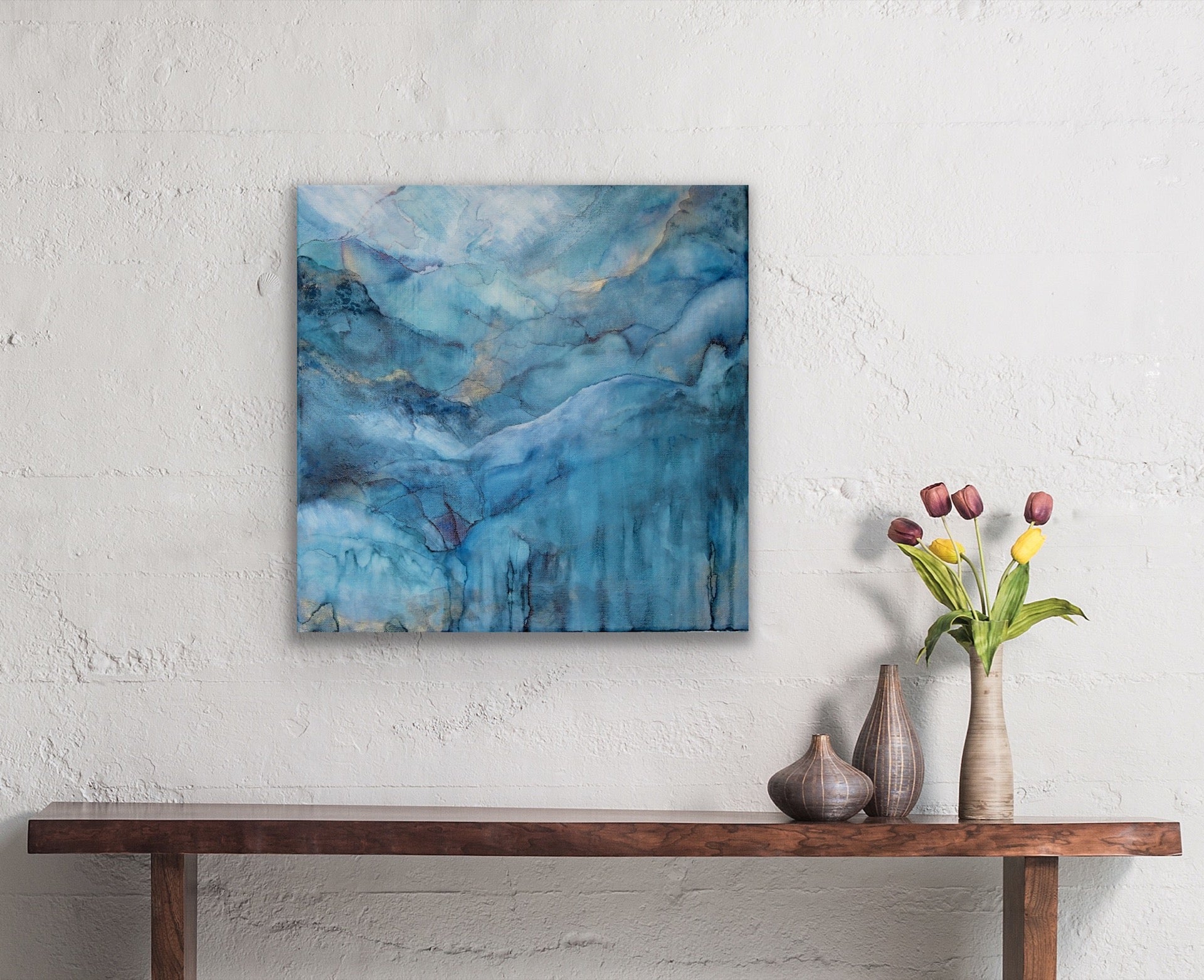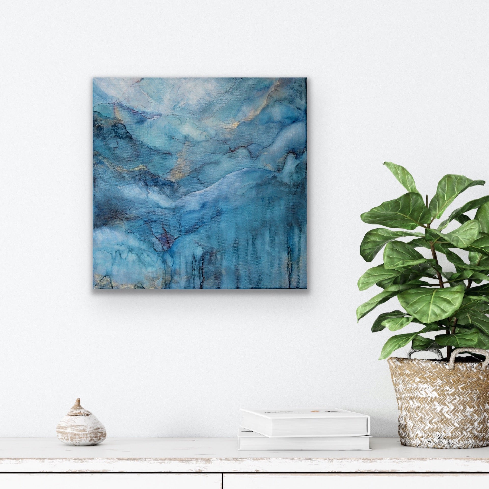 The soft, gentle shimmering golds will cast a beautiful light, creating a serene and peaceful atmosphere. The combination of subtle hues, curved lines, and interesting shapes gives this piece its unique character and beauty. The unique blend of blues and golds will instantly infuse energy and beauty into any space.